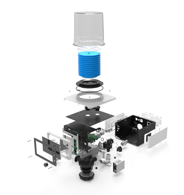 Nos ingénieurs ont intégré tous les composants pneumatiques, électroniques et mécaniques dans un boîtier compact, sans rien sacrifier à la performance de l’appareil. Malgré les contraintes d’espace, ils ont réussi à simplifier l’assemblage, l’entretien et le nettoyage: trois atouts essentiels dans un environnement clinique.